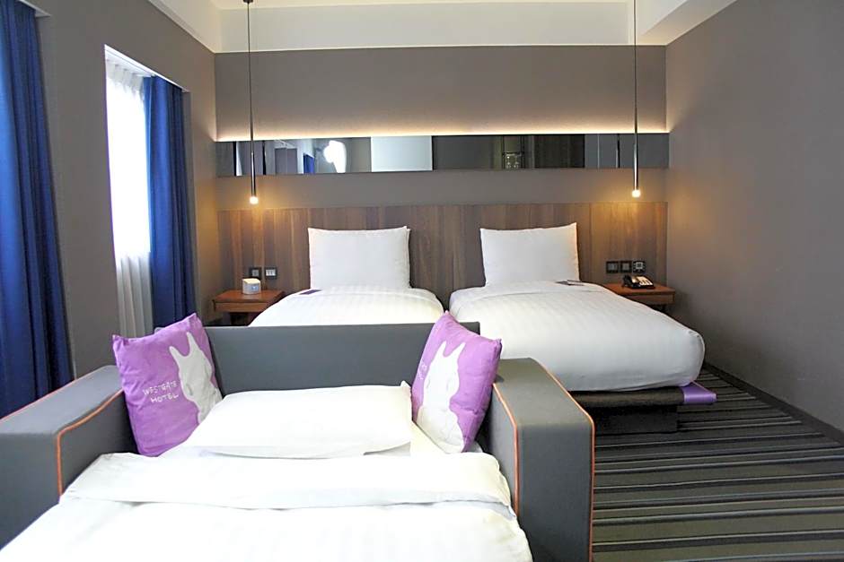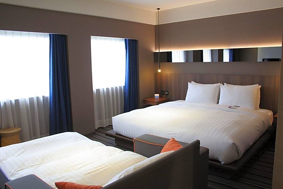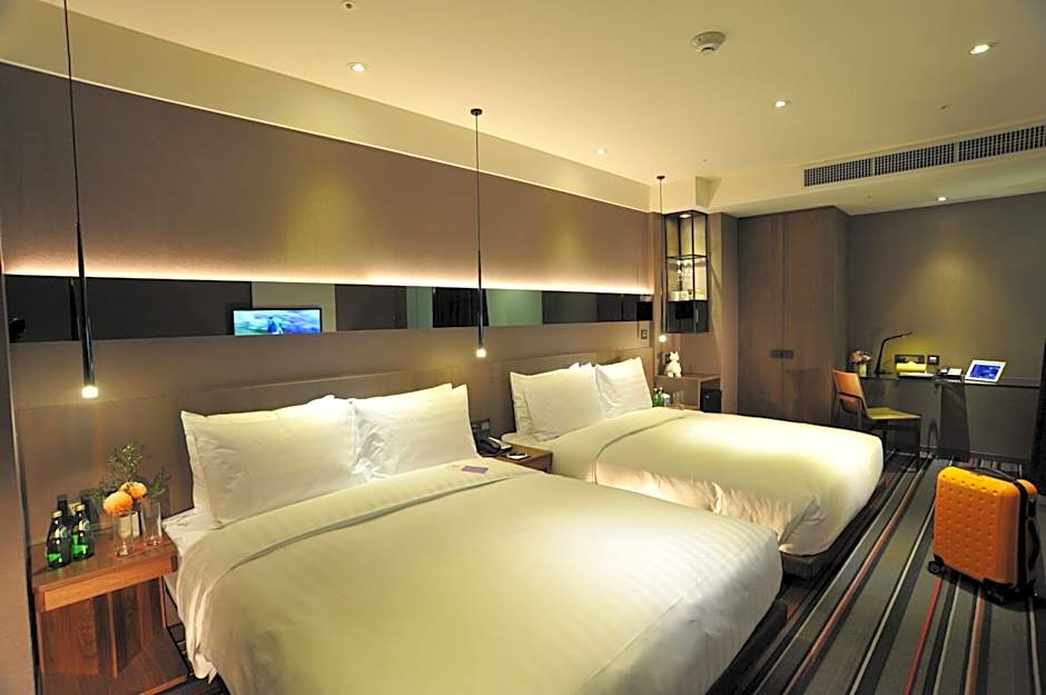 An air-conditioned twin room with city views and facilities like a 40-inch LED TV, a mini-bar and an private bathroom.