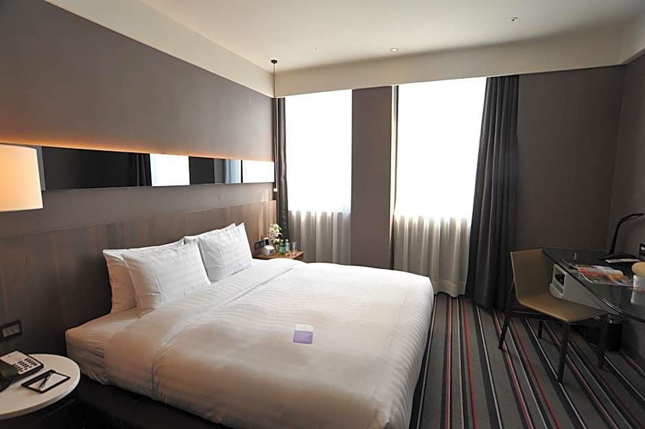 An air-conditioned double room with city views and facilities like a 40-inch LED TV, a mini-bar and an private bathroom.